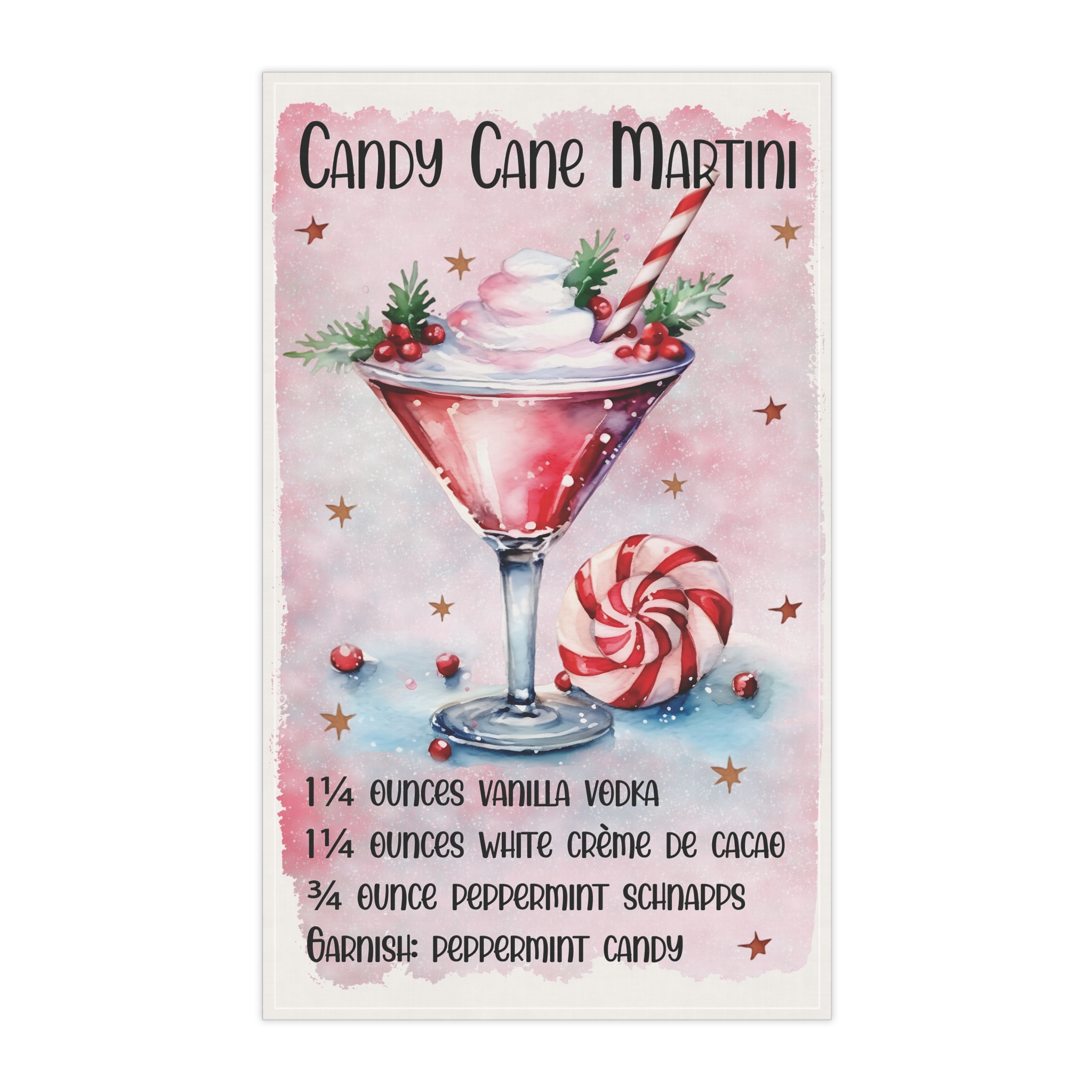 Candy-Cane Martini Kitchen Towel Description: